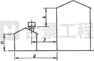 注:當Z/h>2.3時,建筑物的相關(guān)尺寸可不受限制。