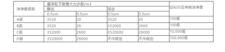 中國GMP(2010年修訂)新版GMP附錄1 無菌藥品.第三章.第九條……潔凈區(qū)各級別空氣懸浮粒子的標(biāo)準(zhǔn)規(guī)定如下
